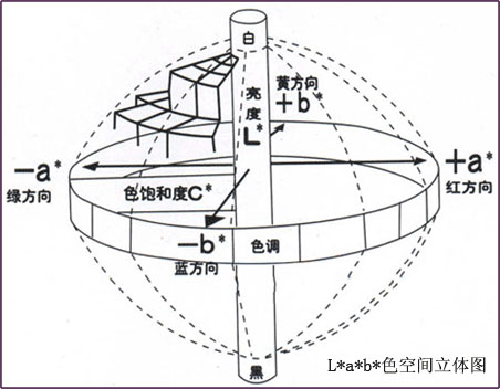 CIE1976L*a*b*色空间(CIE LAB 色空间),是1976年由国际照明学会(CIE)推荐的均匀色空间。该空间是三维直角坐标系统。是目前最受广用的测色系统。以明度L*和色度坐标a*、b*来表示颜色在色空间中的位置。l*表示颜色的明度,a*正值表示偏红,负值表示偏绿;b*正值表示偏黄,负值表示偏蓝。 1976由CIE推荐的均匀色空间。该空间时三维直角坐标 系统。是目前最受广用的测色系统。以明度L*和色度 坐标,a*、b*来表示颜色在色空间中的位置。 L* 表示颜色的明度; a* 正值表示红色,负值表示绿色; b* 正值表示黄色,负值表示蓝色;